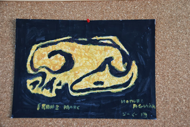 Um desenho a tinta da china, de Franz Marc, transformado em pintura pelo Manuel Aguiar.